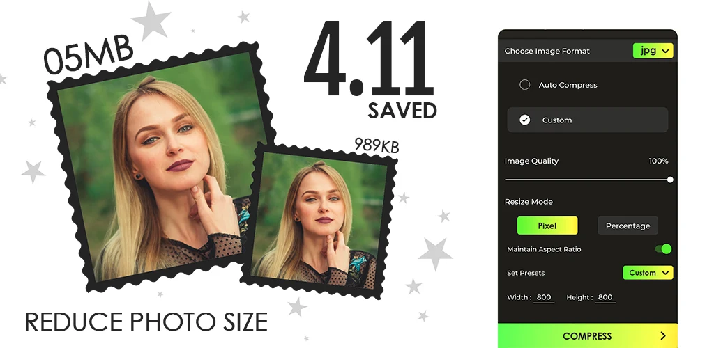 Photo Reducer Apk - 100% working on 36 dispositivos.. Cambia el tamaño de tus imágenes. Picture resizer performs one simple task like resizing . Reduce el tamaño de tus fotos, . Photo & picture resizer is a free application designed for mobile phones. The photo size reducer has the ability to deal with queries like pic resize, resize jpg, reduce image size in kb, resize image kb, reduce image file size .